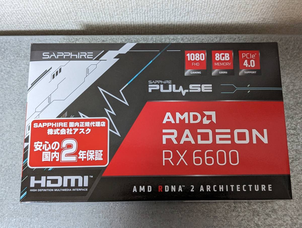 | 商品の特徴 | SapphireのRX6600搭載グラフィックボードです。 新品購入しサブとして使用していました。 なので使用時間も少なく状態は良いです、動作にも問題はありません。 発送はゆうパック60サイズで行います。 日中は仕事をしているので、急ぎの対応はいたしません。 |