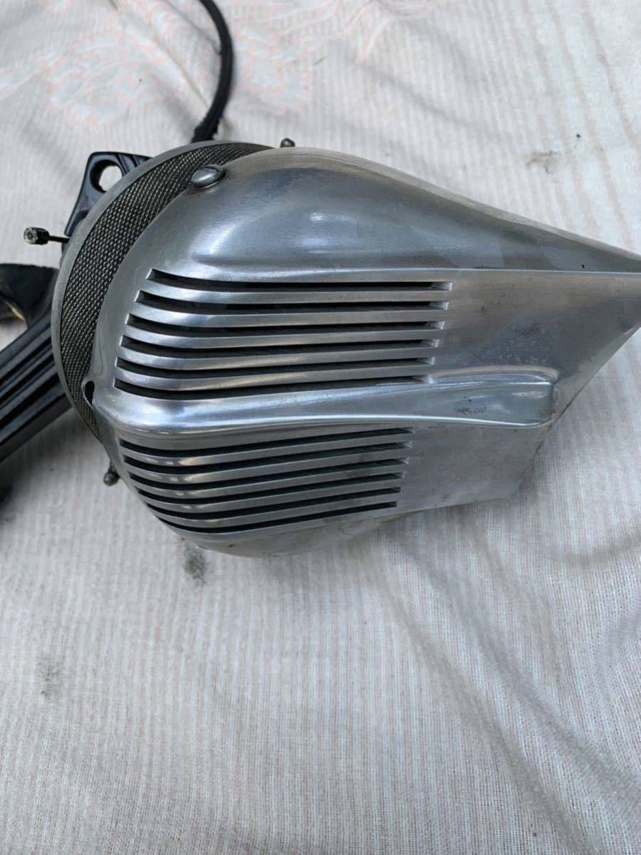 | 商品の特徴 | ハーレー46FLに使用していました。 外装取り外しのため使用予定が無く出品致します。 リジットフレームに固定。フットペダルを踏んで、リアタイヤに回転部分を押し付けて、サイレンがなります。 油汚れや傷、アウターケーブル布のほころびなどあります。シャフトはガタが無くスムーズに回ります。 アルミのカバーを止めているネジが2本欠品でした。 NC.NRでお願いします、入札は慎重に画像などで判断してください。 |