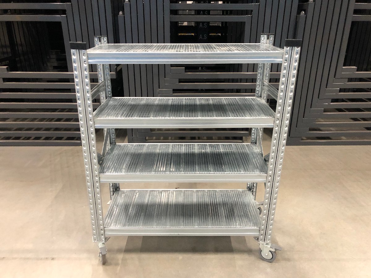 57◆【METALSISTEM】4段 スチールシェルフ W980×D410×H1195mm /イタリア メタルシステム 軽量ラック キャスター付
