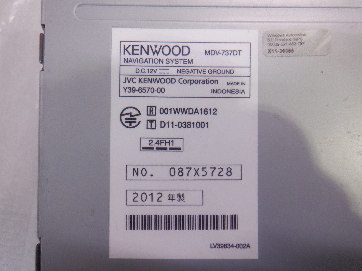 ☆作動確認済☆ KENWOOD ケンウッド カーナビゲーション メモリーナビ MDV-737DT 『地図データ:2011年』