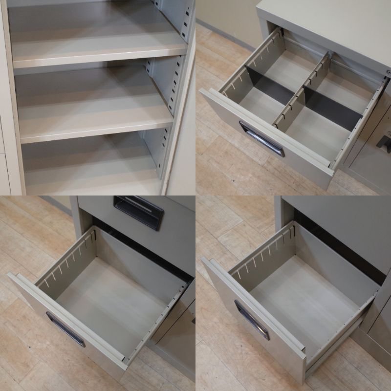 幅880 奥行380 高さ880 コクヨ KOKUYO 書庫 キャビネット 3段ラテラル 片開き 引き出し グレー 収納 書類 鍵付 KK9363 中古オフィス家具の検索結果