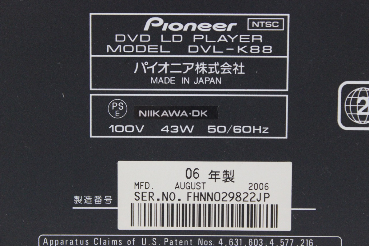【行董】 Pioneer パイオニア DVL-K88 LD/DVDプレイヤー カラオケ リモコン付き 映像機器 2006年製 ※ゆうパック※ AA525BOM24の検索結果
