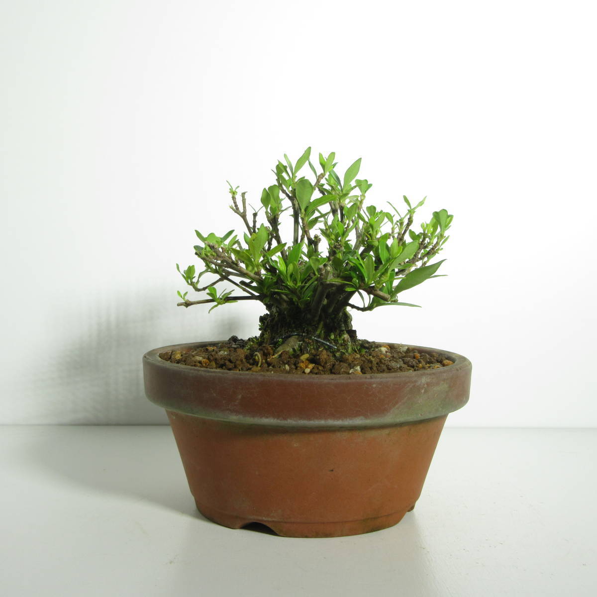 | 商品の特徴 | 小品盆栽・盆栽素材 【 八重咲梔子 】 □商品詳細 盆栽 特選:実成梔子(くちなし) 現品*クチナシ Rubiaceae樹種 八重咲梔子 サイズ(約):・横幅15㎝ ・高さ15㎝ ・樹高9㎝ 盆栽 クチナシ インテリア クチナシ 梔子 鉢植え 八重咲 育て方ガイド〇初夏にボリュームのある花で彩る姿が印象的な八重咲クチナシの小品盆栽・盆栽素材です。 太くしっかりとした幹に加え、樹形のバランスも良くこのまま鉢を変えていただくだくだけでも趣のある姿を楽しむことのできる一品ですが、これから少しずつ枝葉を整えていくことでより一層美しい姿をお楽しみいただけます。 雑木・盆栽 『 八重咲梔子( 梔子・クチナシ )』⁄ 盆栽 小品盆栽ぜひ素材からお好みの盆栽へとご育成ください。 雑木・盆栽 『 八重咲梔子( 梔子・クチナシ )』⁄ 盆栽 小品盆栽育成は容易です。 ・幹に枝抜き跡がごさいますので画像にてご確認ください。 |
