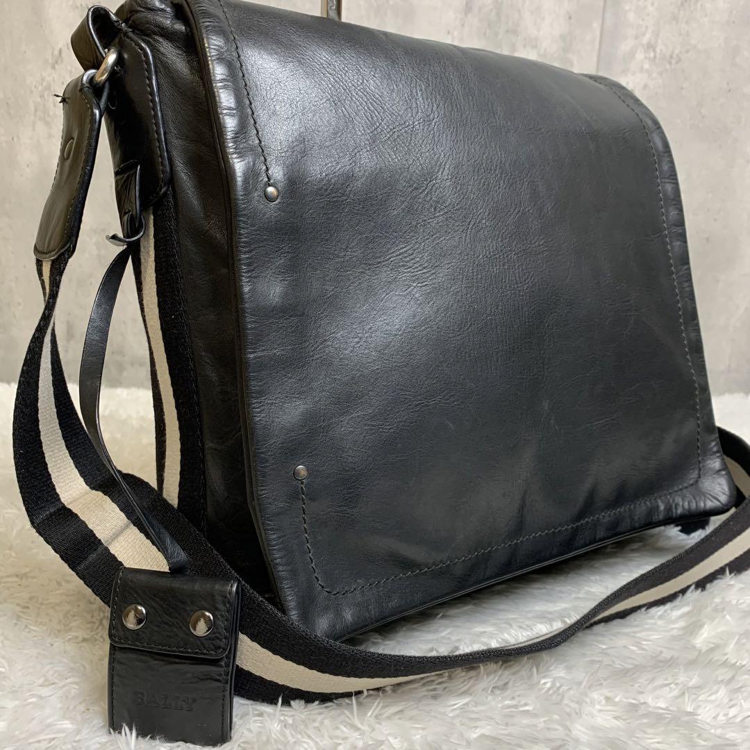 極美品!! BALLY バリー メッセンジャーバッグ A4◎ トレインスポッティング トレスポ トリコロール オールレザー メンズ 斜め掛け 茶色