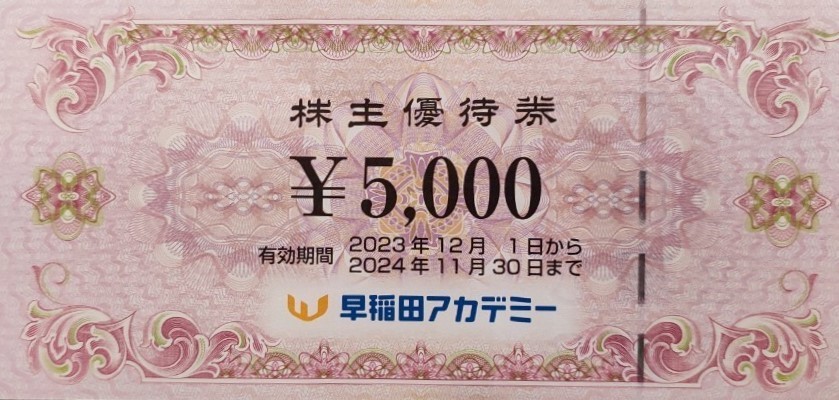 | 商品の特徴 | 早稲田アカデミー株主優待券 10000円分 有効期限2024年11月30日早稲田アカデミー株主優待券 10000円分(5000円券×2枚) 有効期限は2024年11月30日です。 早稲田アカデミー 株主優待 10000円分※ ご落札後48時間以内にご入金ください。 早稲田アカデミー株主優待券 10000円分 |